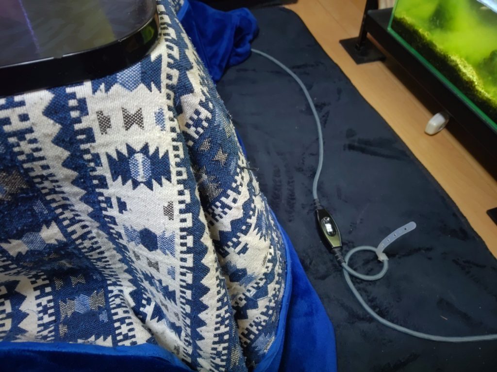 竹ラグのマットをしまい、冬用のマットを敷いてコタツを出しました。