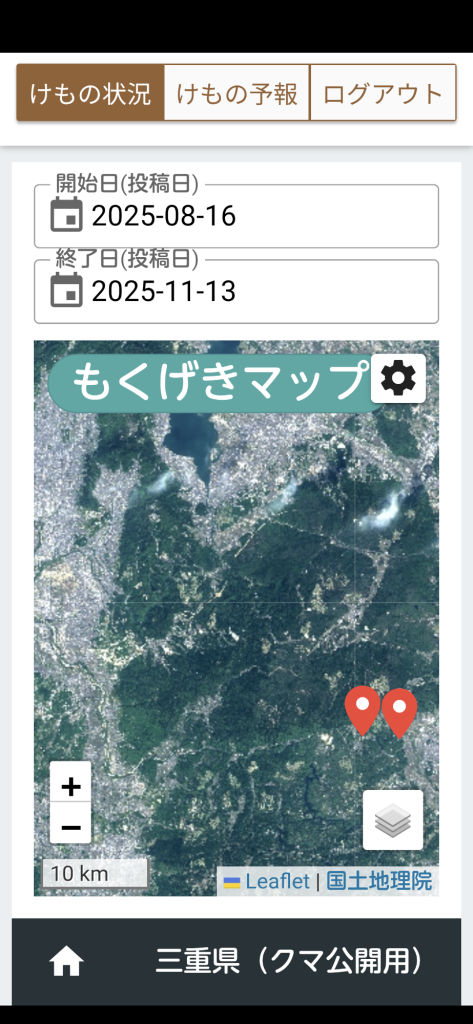 夕方のニュースで三重県の熊アプリを作ったと知事が… ( ̄。 ̄;)