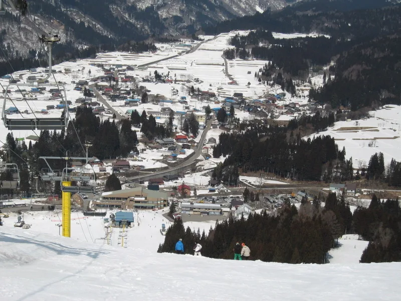 正面のリフトを降りて左に回って真下に見える石徹白村を見下ろすと、ト